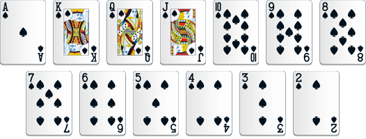 Ein Deck oder Stapel besteht aus 52 Karten. Sie sind in 4 Farben unterteilt, von denen jede 13 Ränge hat.